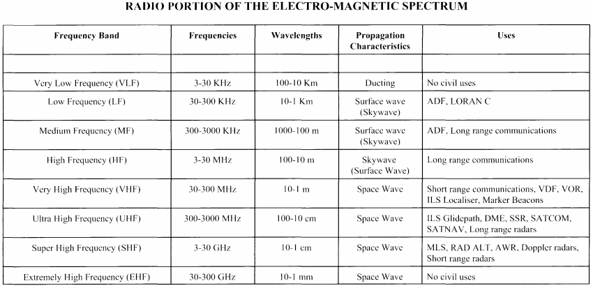 Lennunduses kasutatakse valdavalt raadiolainete lühilainelist, mikrolainete osa. Vastavad sagedusribad on VHF, UHF, SHF. Raadiolained jagatakse sagedusdiapasoonidesse (frequency bands). Vaata alljärgnev tabel.